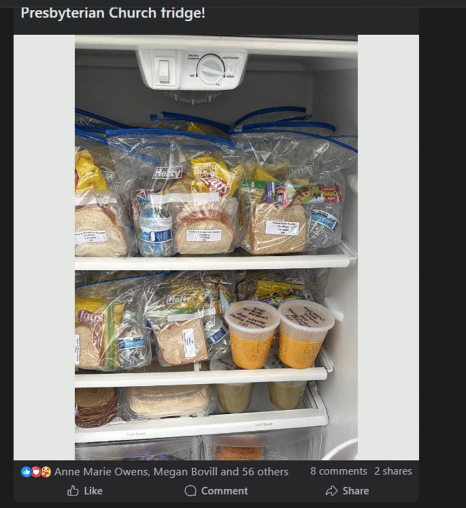We’ve already had much success in providing food for our neighbors. Thank you to the many Govans Presbyterian Church members and friends who have provided food.